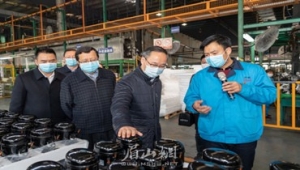 20-02-28眉山市委書記慕新海蒞臨公司檢查疫情防控和復(fù)工復(fù)產(chǎn)工作 2月22日上午,市委書記慕新海等市領(lǐng)導(dǎo)一行到公司檢查指導(dǎo)工作,莊繼海總經(jīng)理匯報了公司防疫工作落實情況以及復(fù)工復(fù)產(chǎn)進展情況。慕新海書記實地查看了公司產(chǎn)品的生產(chǎn)現(xiàn)場,詳細聽取了公司在復(fù)工復(fù)產(chǎn)中存在的困難與問題。慕新海書記強調(diào),當(dāng)前,疫情防控工作到了最吃勁的關(guān)鍵階段,要在嚴(yán)格做好疫情防控工作的前提下,有序組織復(fù)工復(fù)產(chǎn);要不斷完善和優(yōu)化防控工